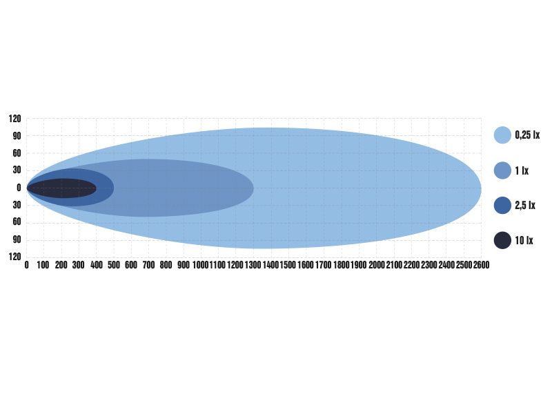 - Ulatusnäitaja: 1 lux @ 1300 m.