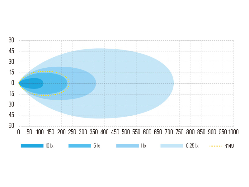 | Kaugus, 1 lux | 235 m |